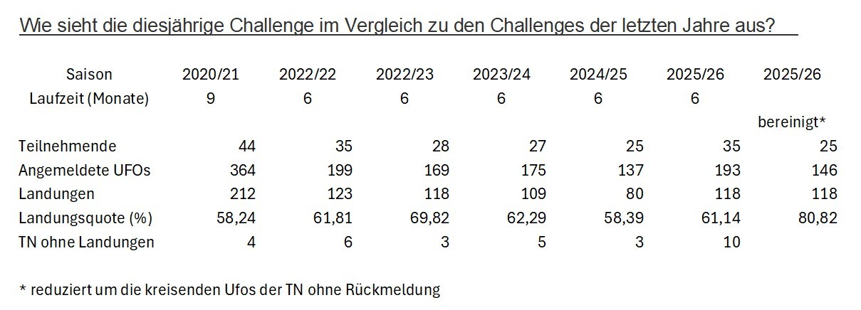 Liebe LeserInnen und Teilnehmerinnen der UFO-Challenge 2025-2026.