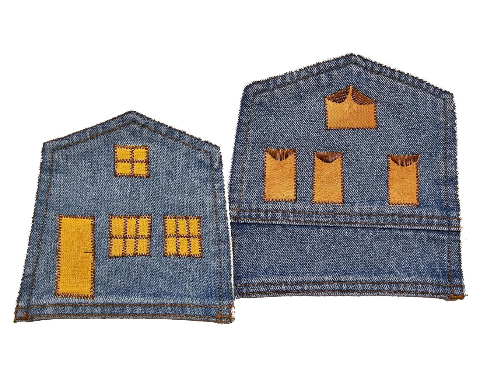 Ich habe mir dazu die rückwärtigen Taschen von Jeanshosen abgetrennt. Wenn man die auf den Kopf stellt, hat man schon ein kleines Haus mit Giebel. Jeden Tag möchte ich mir zwei Häuschen vornehmen und die Fenster darauf nähen. Daus wird dann – je nachdem wie lange ich durchhalte, eine kleine Einkaufstasche oder ein Wandquilt mit einem Häusermeer. Wir werden sehen. Wenn du mitmachen möchtest, freue ich mich über Bilder hier unter diesem Beitrag, in unserer Facebook-Gruppe oder auf Instagram. Zusammen können wir den November-Blues vertreiben und mit offenen Augen durch die Stadt ziehen, immer auf der Suche nach neuen Inspirationen für Fenster, Türen und kleinen Szenen, die sich in den Häuschen abspielen. Hier gibt eine kleine Anleitung, wie ich vorgehe.