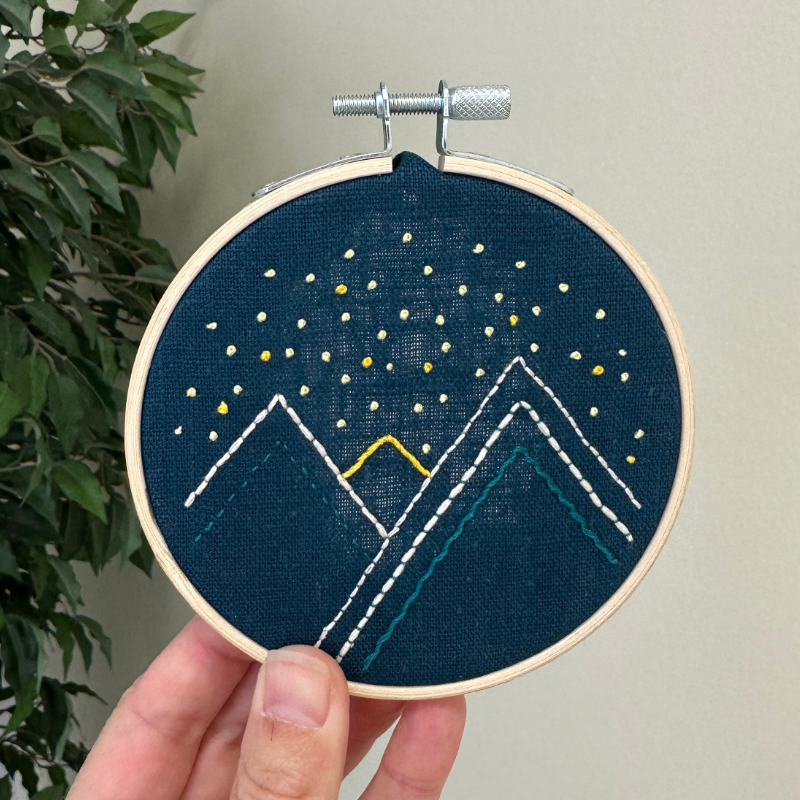 Tauche ein in die Welt der Handstickerei! In diesem Kurs lernst Du Schritt für Schritt den Umgang mit Material und Werkzeug und erlernst fünf grundlegende Stiche. Gemeinsam gestalten wir daraus eine kleine Miniaturlandschaft – ein modernes, grafisches Kunstwerk, das Du am Ende des Kurses fertig mit nach Hause nehmen kannst.