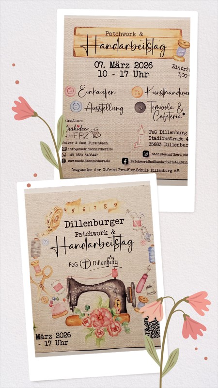 Ein Tag rund um Patchwork und Handarbeiten - Shopping, Workshops, Ausstellung und, ganz wichtig, Cafeteria & Tombola im hessischen Städtchen Dillenburg.